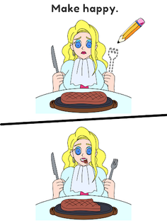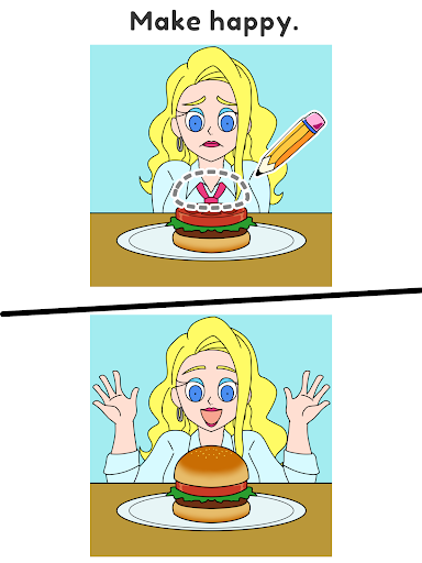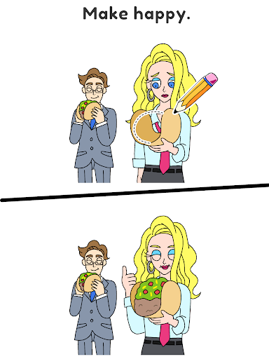 To pass this level, you have to discover why they are in trouble or in a bad mood. Think of something they will be happy with and write it in your own hands.