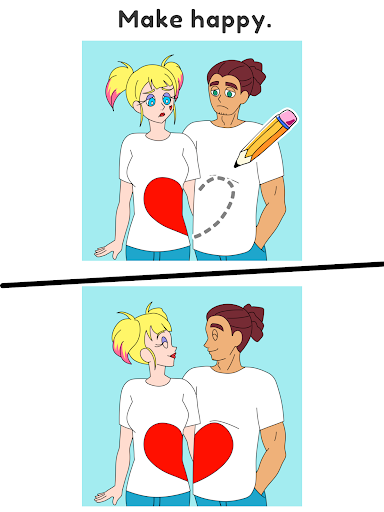 To pass this level, you have to discover why they are in trouble or in a bad mood. Think of something they will be happy with and write it in your own hands.