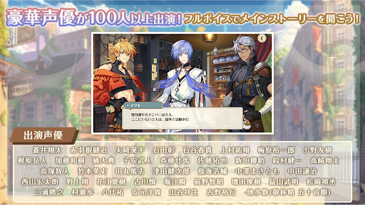 The game features multiple voice actors including Shohei Aoitsuki, Kenji Akabane, Koki Uchiyama, Takashi Kondo, Akira Ishida, Haruki Ishiya, Yudai Isshiki, Ryohta Iwasaki, Yuusuke Umemura, Yuichiro Umehara, Shin no Suke Ono, Takehito Koyasu, Katsuki Kitakata, Kazuki Kato, Hidetaka Kano, Sho Kano, Daiten Kusunoki, Yuu Kobayashi, Takehito Koyasu, Soma Saito, Shogo Sakata, Takaomi Sakagami, Takao Sako, Tarusuke Shingaki, Kenjiro Tsuda, Wataru Takagi, Kosuke Toriumi, Masatomo Nakazawa, Joji Nakata, Takuma Nagatsuka, Yusuke Nagano, Koki Uchiyama, Hiroki Yasumoto, Shota Yamamoto, Yoshiki Nakajima, Yoshifumi Yoshitomi, and Yukari Yuzuki.