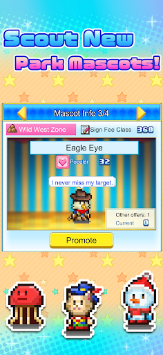 Always keep your mascots in mind as they are the face of your Park! Each year you will have the chance to explore new mascots. Once recruited, you can obtain access to unique theme zones such as the Space Zone, Snow Zone, or Desert Zone. As a token of appreciation to your guests, you can progressively arrange spectacular parades to heighten their excitement.
