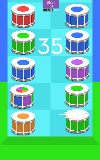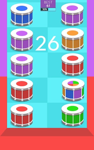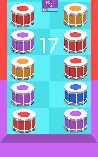 The premise is simple! The background colour is constantly changing; to stay in the game you’ve got to tap the drums of the same colour as they move downwards. If any tiles make it to the bottom of the screen, the game is over and you have to restart... It’s a dizzying gaming experience that is sure to test your reflexes and concentration!