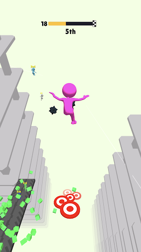 Compete with other players and land on the platforms, use rings and trampolines to get boost and reach the finish line first.