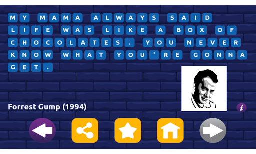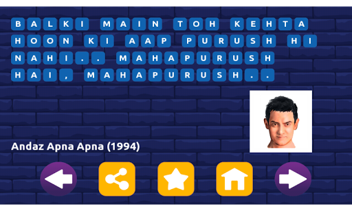 There are almost 2000+ best Movie Quotes from English, Hindi & Marathi movies. If you ever liked a decent Movie Quote, it is highly likely that you will encounter it as one of the levels while playing this game.