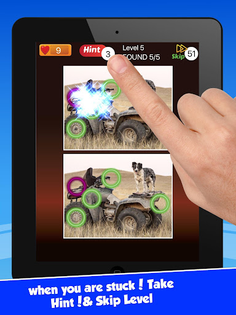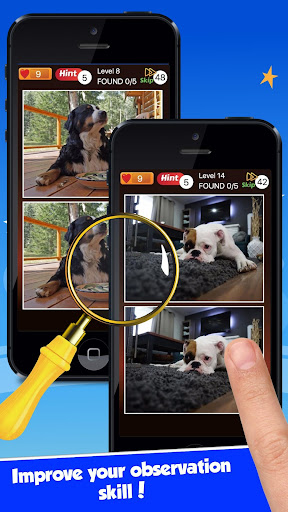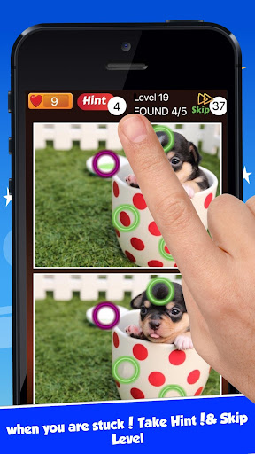 5. when you are stuck! Take Hint for increase the number of difference and Skip to skip level.
