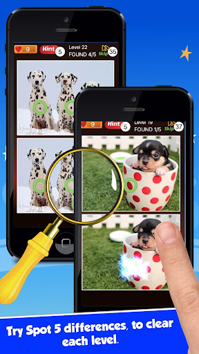 Spot 5 differences in each photo, Simple and Easy but very so funny addict game.