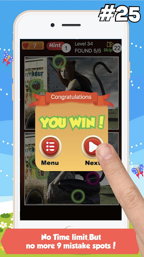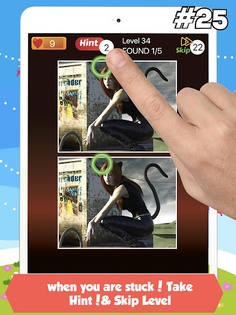 5. when you are stuck! Take Hint for increase the number of difference and Skip to skip level.