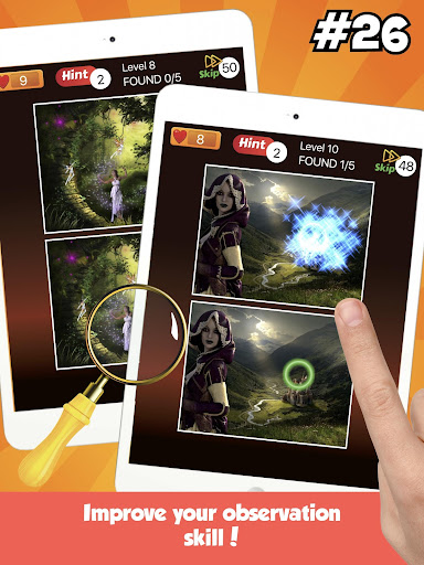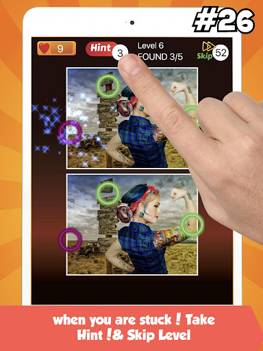 5. when you are stuck! Take Hint for increase the number of difference and Skip to skip level.