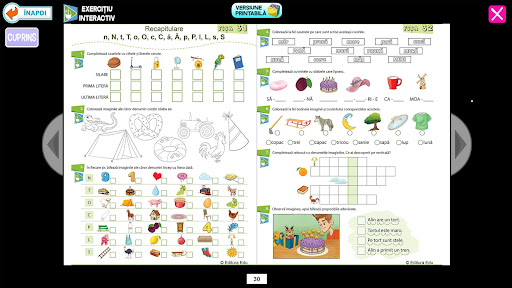 Contains 64 worksheets for CLR, with 210 interactive exercises for each sound and letter. The exercises are designed taking into account the age characteristics of the children, having an intuitive and easy-to-use interface, with audio and sound requirements for each exercise/image/interactivity. The notions of initial/inner/final sound, dividing into syllables, creating graphic schemes, image/word association, writing with printed letters the words corresponding to the images, games and puzzles are verified and consolidated.