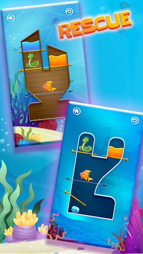 It is a free brain teaser game where you must figure out which pin to pull and in what order to pull the pin to save the fish from various obstacles like rocks, bombs, dynamites, poisonous gase.
