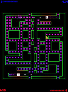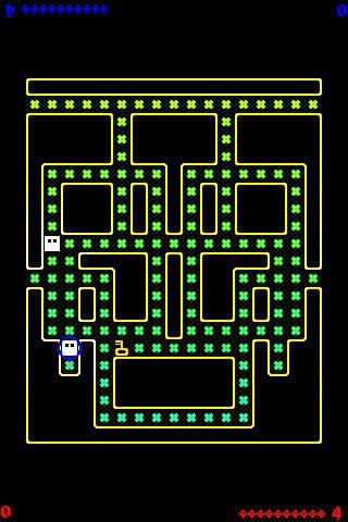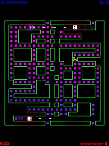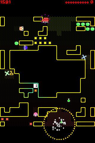 Procedurally generated, screen-wrapping, destructible mazes. Tiny little pixelly graphics and zappy retro sound effects.