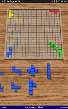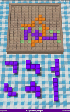• Supports 2-player modes, with 2 colors (Original and Blokus Duo), 4 colors (2 each).
