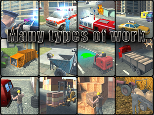 - 14 types of work (Police patrol, fire, medical, handyman, freight forwarder, taxi driver, etc.)