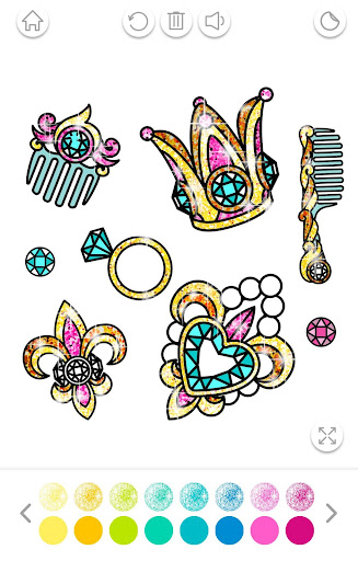 ⭐ You will learn how to use our coloring game very quickly! Girls Coloring Book for Kids Glitter game is very easy to use and absolutely FREE: no paid content, all for FREE!