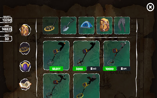 Travel to mysterious islands and pick up quests. Use your detector and shovel to search. Enjoy the nature and adventure while searching for hidden treasures, gold and precious metals.