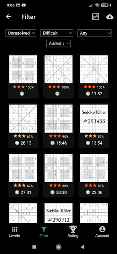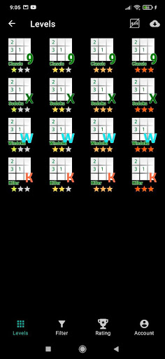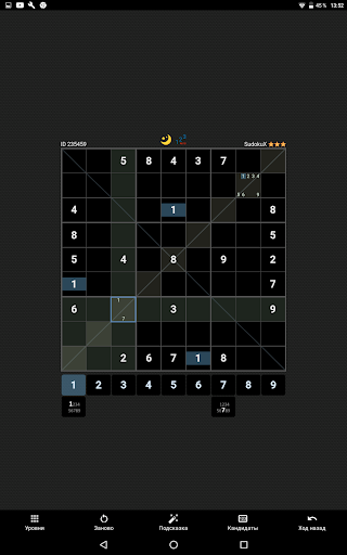 Application contains 640 the most interesting offline levels. Tens of thousands of other levels are available in the online catalog for free. The application has both very easy levels, suitable for beginners, and extremely difficult, suitable for experts. New sudoku puzzles are added daily!