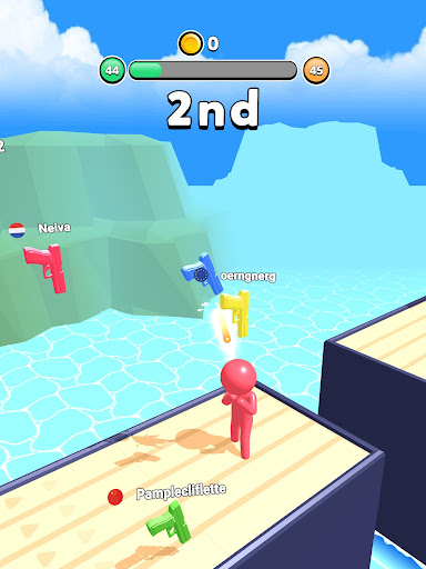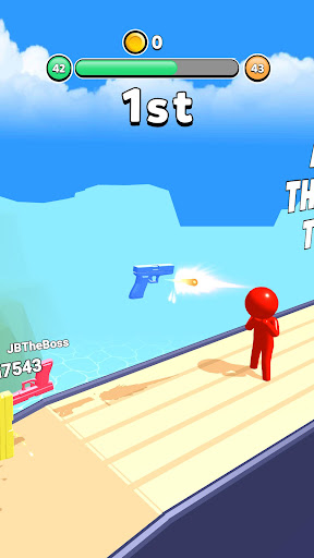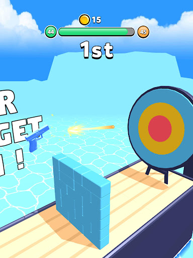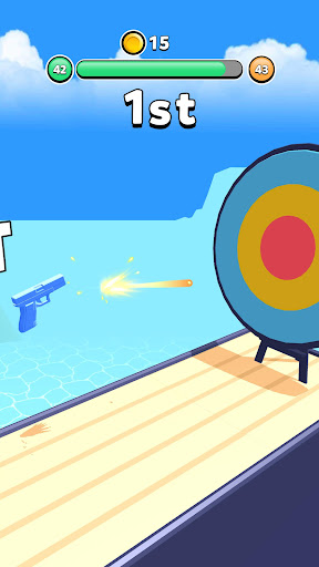 Shoot, watch your gun spin and shoot again in the right direction to make it move to the finish line!