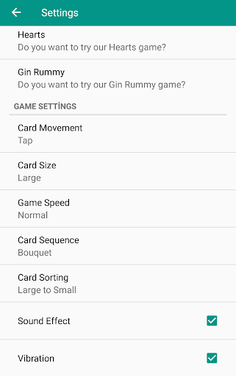Hearts Settings: