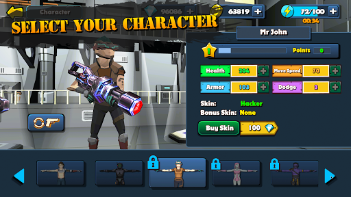 - SELECT YOUR CHARACTER SKIN: There are a lot of character skin you can select. Each skin will have another benefit. For example: Ninja Skin will help you move faster, Knight skin will help you increase armor...