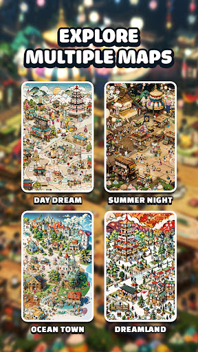 - Multiple scenes and maps. Explore different locations on the map, from city streets to deep jungle, and unlock new maps by uncovering various objects.