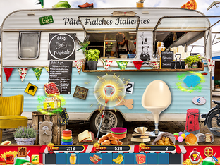 Search for food trucks worldwide, finding hidden objects in levels featuring diverse cuisine. 40+ levels and a memory boosting mini-game.