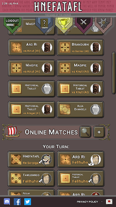 Hnefatafl offers customizable variants with over 200,000 possibilities for online and offline modes. The game supports cross-platform play with iOS, Windows, and Linux, allowing players to access all their matches using a single account from any device. Multiplayer mode is asynchronous, permitting players to pause and continue their matches whenever they want. Are you ready to triumph and enter Valhalla? Hnefatafl comprises various game variants such as Hnefatafl - Copenhagen, Sea Battle 13x13, Brandubh, and many others.
