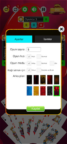 Hoşkin game features: with an extremely easy to use user interface. Hoşkin game settings: Decide how many hands the game will be played.