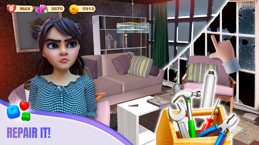 As a famous interior designer, your talent of home design are well-known by people. After beating the match 3 levels, you can help clients to renovate their rooms, houses, gardens, swimming pools, library and design a dream home for those good people.