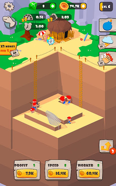Dino skeleton, statues and UFOs will bring you gold. Improve your team of archaeologists and find even more antiquities. Dig out everything that is stored underground and become the best idle tycoon in archeology. Fame and fortune await you - hire the first worker and break the first block right now.