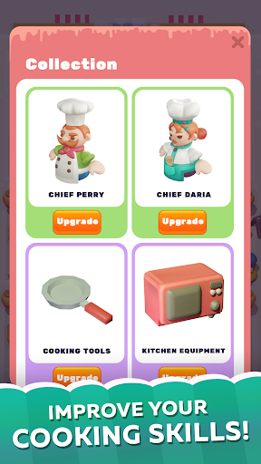 Players will be able to tap and upgrade their cooking skills in a simulation-style clicker. As they become more skilled in the kitchen, they can unlock new recipes, upgrade their ingredients and cook faster, serving more guests and earning more money. The diary feature allows players to track their progress and achievements, making the game both enjoyable and challenging.