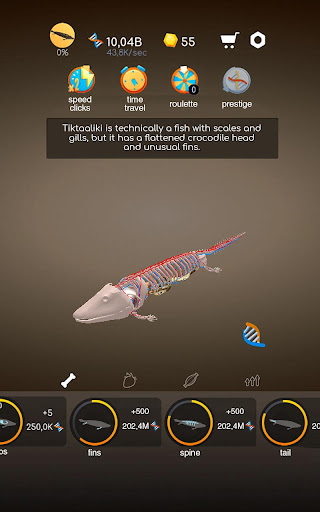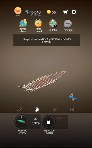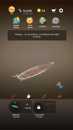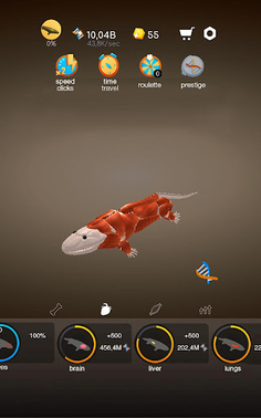In game Idle human evolution, you will see a unique system of improving creatures. Excellent graphics of game objects, a new experience in creating a living organism. In this skeleton game, it is possible to collect fish, viruses, people, and animals. Tap tap clicker is already waiting for you! Your goal is to accumulate a lot of cells, one, two, three, and, therefore, there are already a million of them, from which you create organs, muscles and full body.