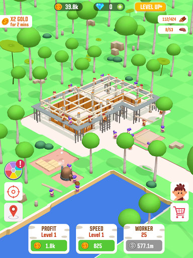 In this builder simulator game, you can tap to earn coins and diamonds. The more coins you possess, the more resources you are likely to gain. Wisely assign workers with different tasks, from brick making, lumberjacking, to house building. You are in total control of managing the process to optimize workflow and get the houses built as perfectly as possible.