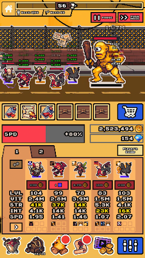 After you prestige, your monster team can enter the Tower to battle legendary heroes and epic monsters. Defeat every monster team in battle to climb the tower. Collect gems and monster rewards for every victory.