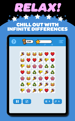 But fear not, if you're stuck in a rut, there are two helpers to guide you towards victory. The first, 🔎, is a spyglass that highlights a matching pair, while the second, 🤹, shuffles the board to shake things up in case you've exhausted all your options.