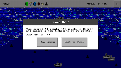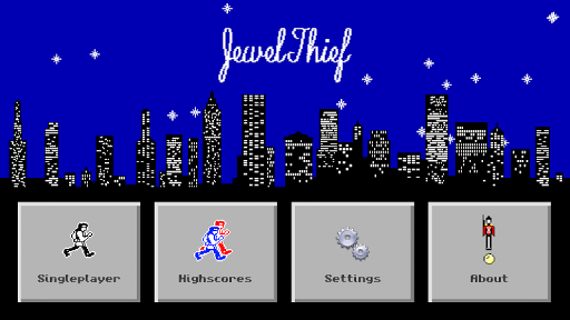 Lastly, we would like to acknowledge the original game's creator Paul Ligeski and his team at ServantWare for the game idea, sprites, and backgrounds. We also would like to thank our collaborators for their wonderful contributions including Yannick Lemieux for the applause sound and NenadSimic for the collect sound. Additional sound effects were courtesy of freesfx.co.uk. The music was composed by Chris Zabriskie and the game development framework libGDX is licensed under Apache-2.0. Jewel Thief is a re-implementation of the ServantWare classic created in 1991 to bring an updated version to modern hardware. We hope you'll enjoy our adaptation and join us in our quest for jewels.