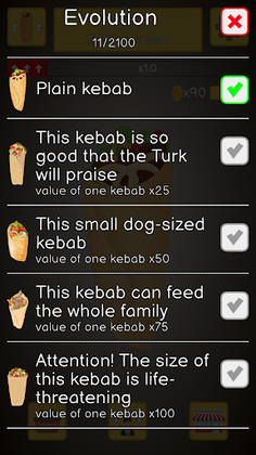 Reach the maximum level, create a huge network of kebabs and conquer the galaxy with the help of your delicious kebabs.