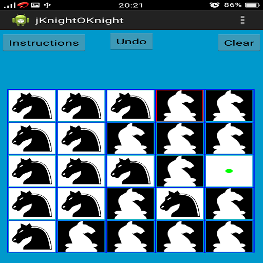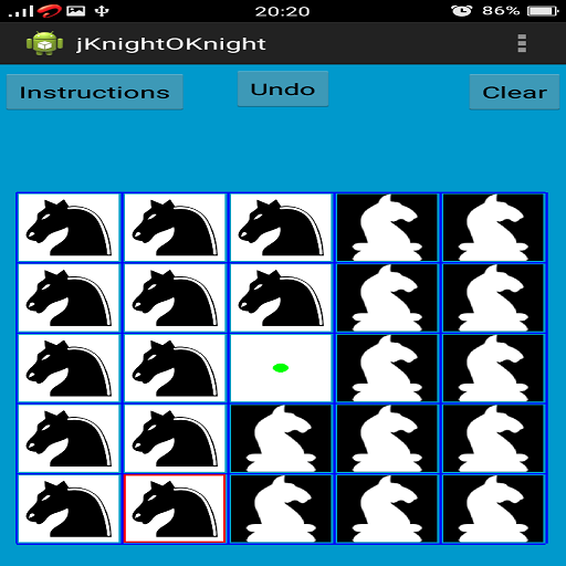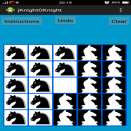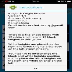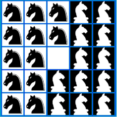 There is a 5x5 chess board with 12 white knights and 12 black knights in this game.White knights are placed on the right and black knights are placed on the left symmetrically.