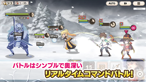 RPG featuring characters from "KonoSuba" anime, including original characters. Full-voice story, new animations, and real-time battles. Recommended for Android 9.0+ devices.