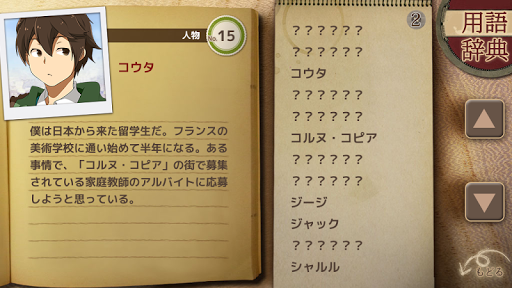 ・ You can refer to words and characters appearing in the scenario at any time with the glossary function.