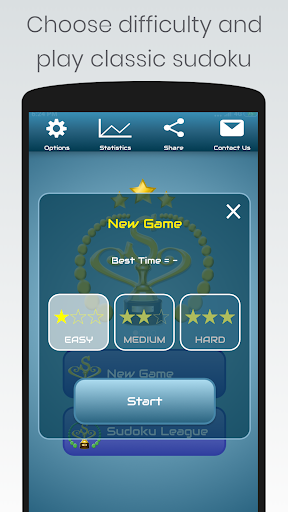 ✓ 4 difficulty levels; 3 levels on the classic sudoku game (easy-medium-hard), and expert difficulty level on the Sudoku League game.