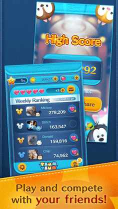 To enjoy LINE: Disney Tsum Tsum, you should simply connect three or more Tsum Tsums of the same type to pop them and proceed to the next level. The more Tsum Tsums you match, the more points you gain, which will get you closer to the top of the leaderboard. Additionally, if you want to boost your score, you can use the Fever Time to get an extra number of points.