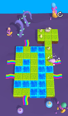 Switch between a Pig and a Fish to push the Lost Duckling to its mother.
