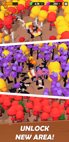 Drive your mighty mech, chop trees, and automate the entire process! From forest to factory, build self-running production lines that turn logs into profit. Expand your lumber empire and become the ultimate timber tycoon!