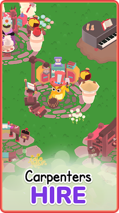 The best part? The game is a tycoon simulation game, so you can play at your own pace! The game is calming and easy to play. You can have your carpenter owls work while you're away, producing and selling furniture to keep making money. And with the new kings of the jungle being the owls, you'll want to ensure your business is always ahead of the competition.
