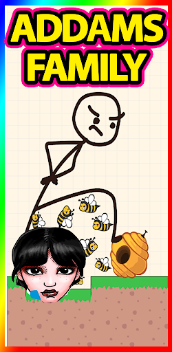 🐝Draw only one line to save the wednesday addams and finish the level.
