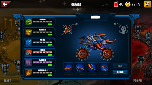 In each of the 72+ levels of various missions, you'll drive around 6 uphill locations where your opponents are fantastic creatures such as pharaohs in ancient Egypt, devils in Pompeii, Vikings in winter land, vampires in Transylvania, aliens in Nemesis, and zombies in the Necropolis. To become the only king of the roads, you must triumph in wild car matches and smash the bosses that rule this city.