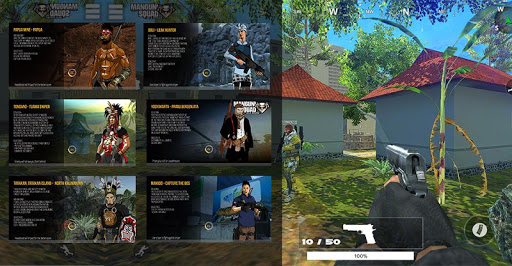 Manguni Squad is a first-person-shooter (FPS) game. Every mission has various weapons and each mission has its own challenges. The Manguni Squad game is packaged by incorporating nuances typical of regions in the archipelago through visualizing objects of Indonesian heritage buildings in the scenario.