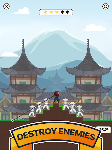 Once you shot the victim, you level up and gain coins, which you can further access the shop. There, you will find a large amount of skins to choose from and get your ninja personalized. Finish all levels, defeat all your enemies and become a legend.