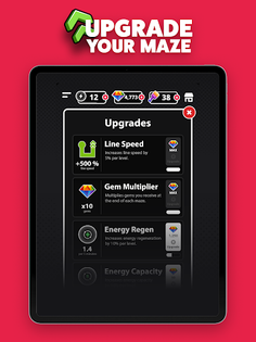 🚀 SPEED UP - Turbo charge your line speed and cruise to the end of the maze faster! Each level moves a little faster, to cover more ground. But you can carve corners even quicker with this boost!