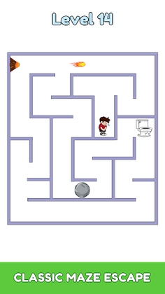 - Easy to Play: Draw to guide the character through the maze and find the toilet.