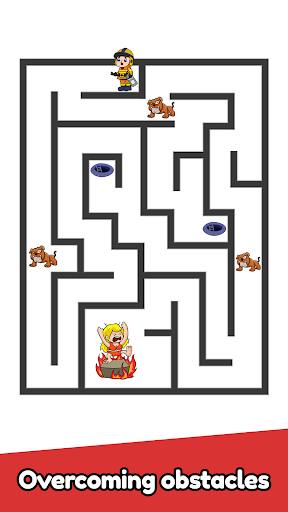 - Easy to Play: Draw to lead the firefighter through the maze and save the girl from a fire.
